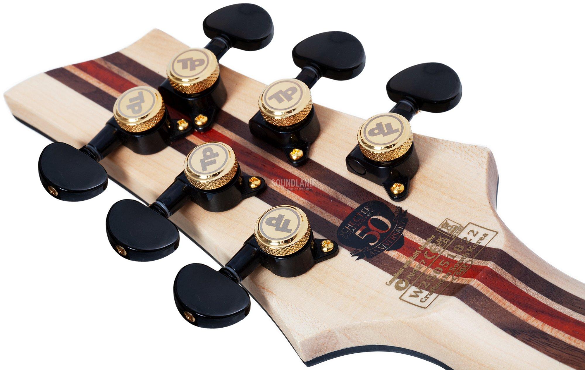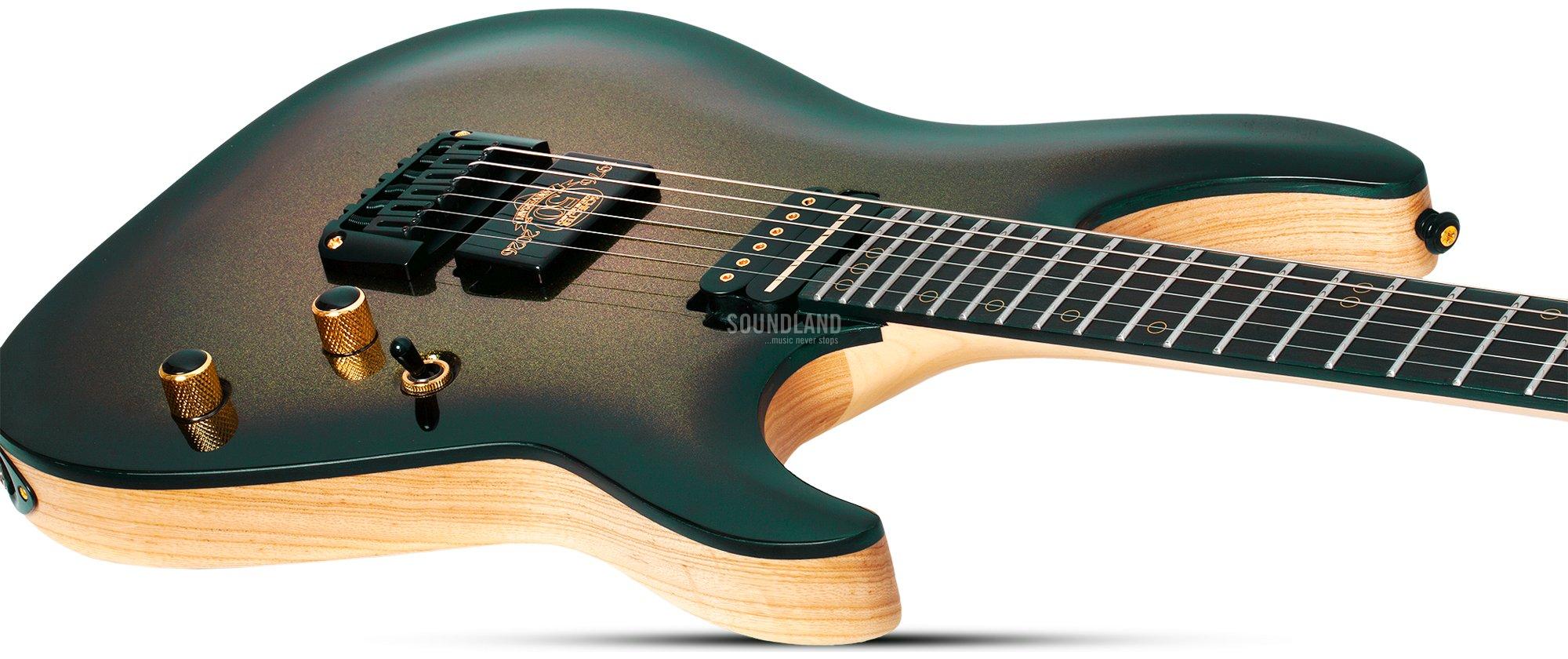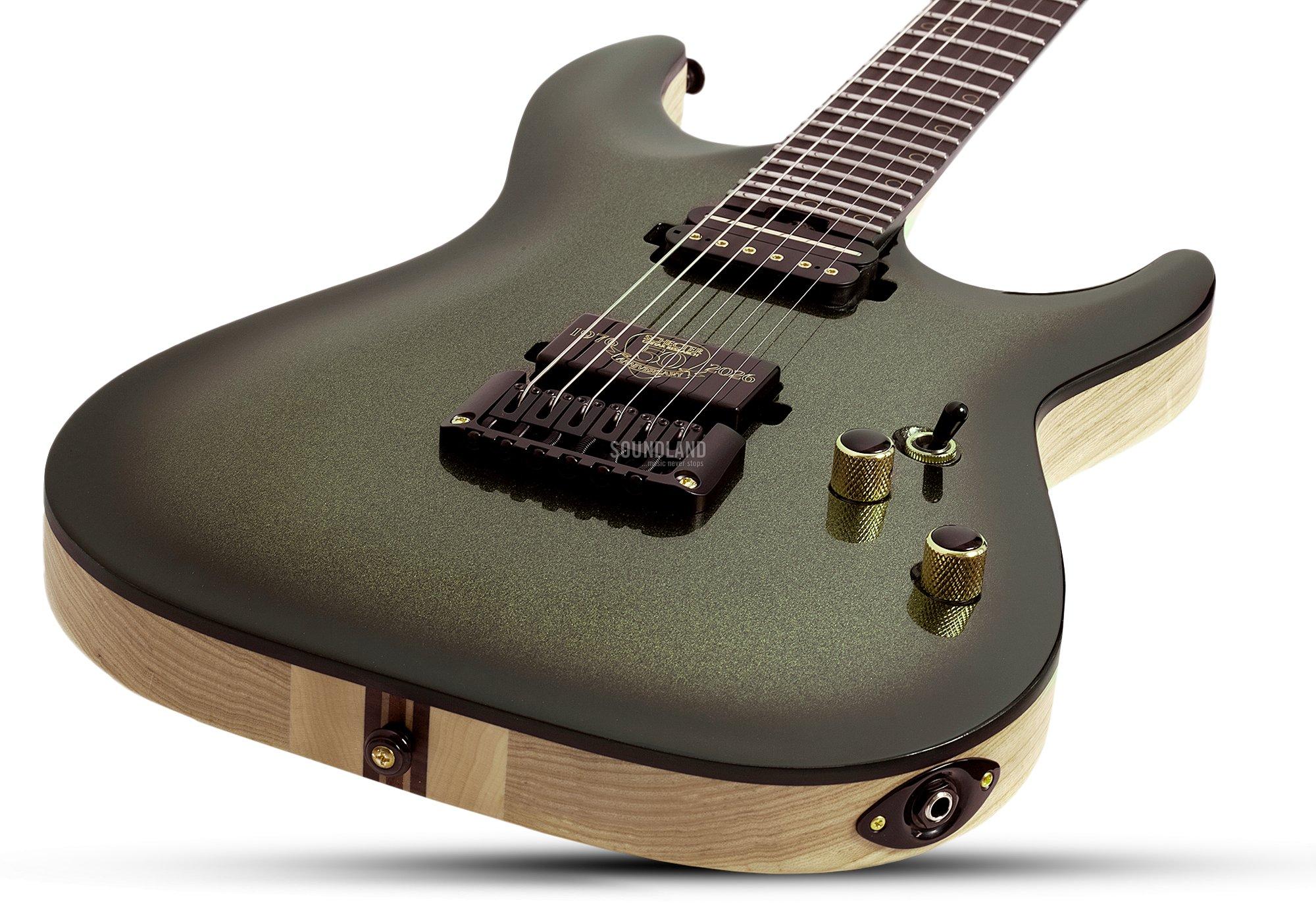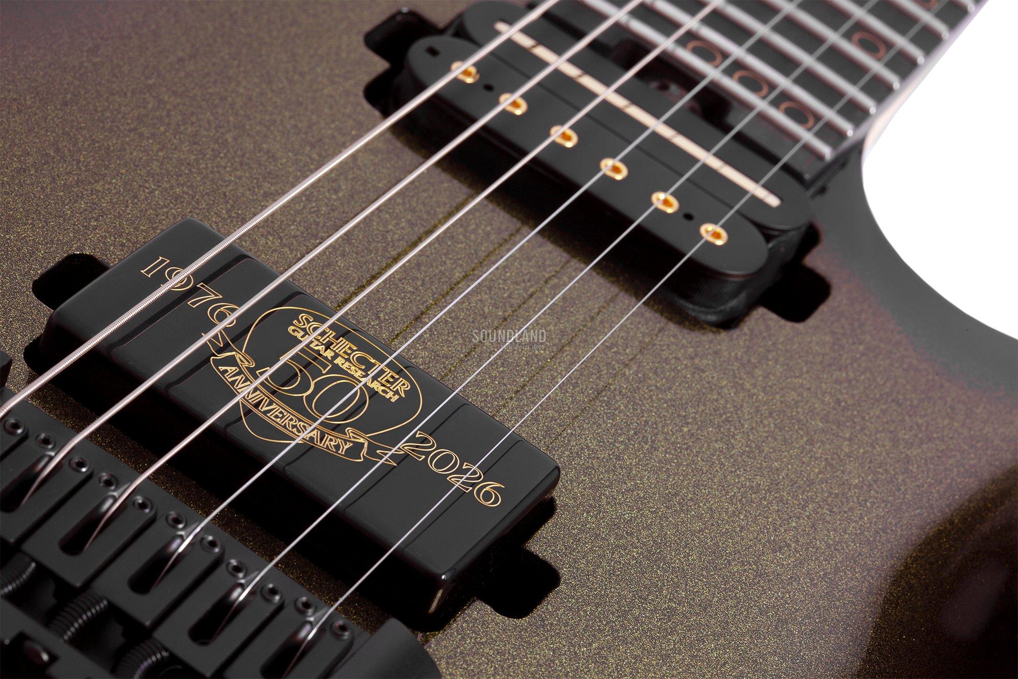 - Tonabnehmer: 1x Schecter Sunset Strip 'Anniversary Edition' Humbucker (Steg), 1x Schecter Pasadena Classic 'Anniversary Edition' Humbucker (Hals)