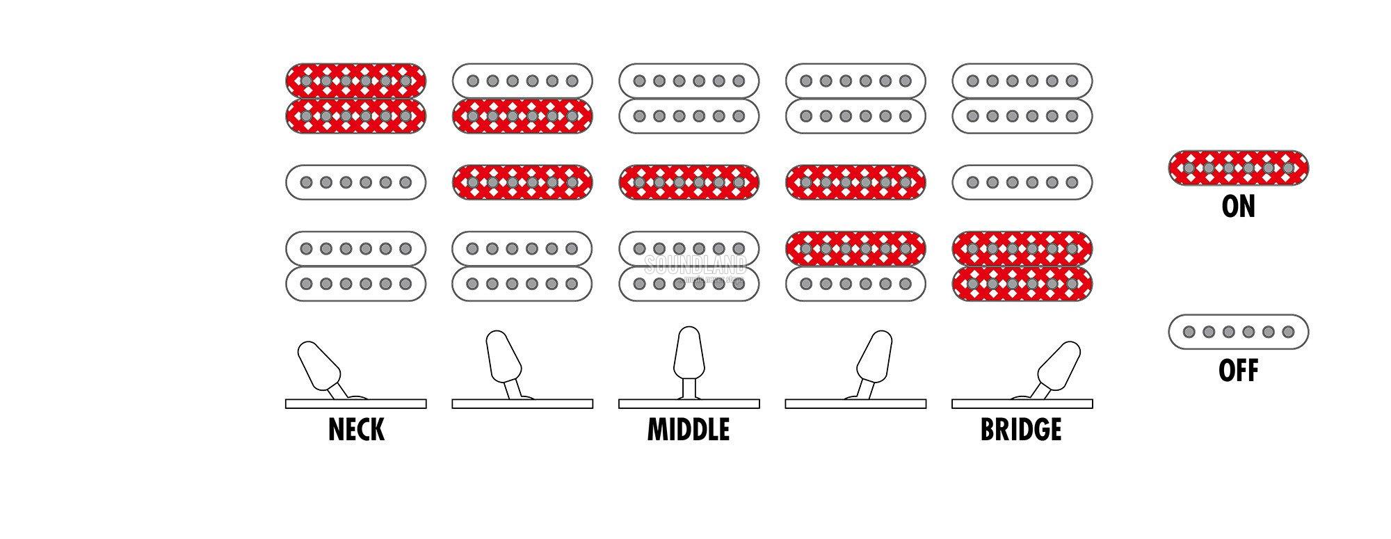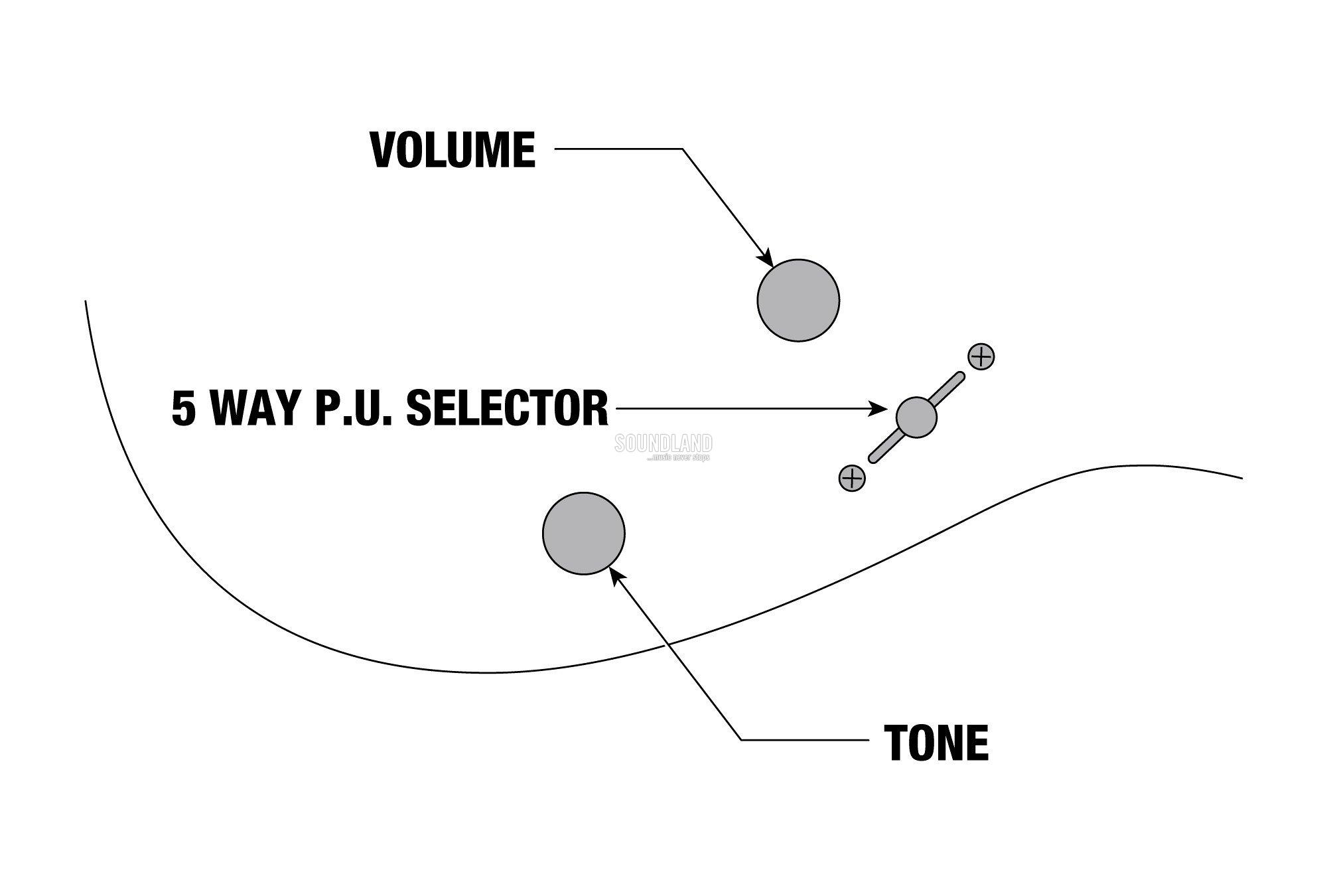 - Regler: 1x Master Volume, 1x Master Tone, 5-Weg Tonabnehmerwahl